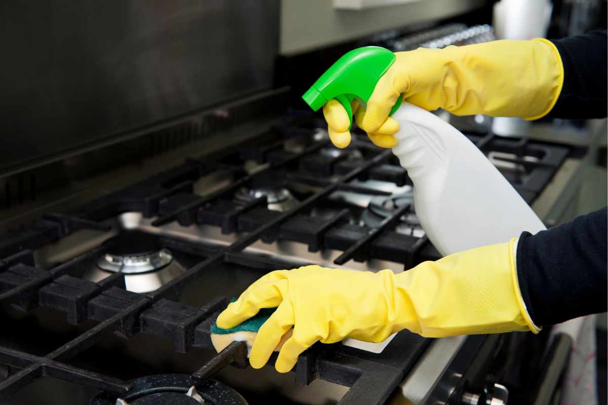Chiudi il gas e assicurati che i fornelli siano completamente freddi. Se hai l’accensione elettrica, stacca anche la corrente per sicurezza.