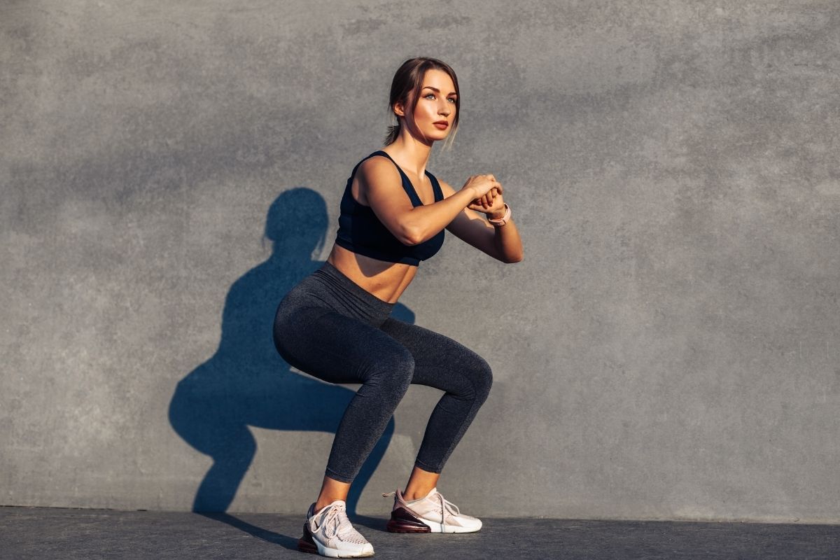 - Squat: ottimi per tonificare gambe e glutei. In piedi, con i piedi alla larghezza delle spalle, piega le ginocchia come se stessi per sederti, mantenendo la schiena dritta. Esegui 3 serie da 15 ripetizioni.